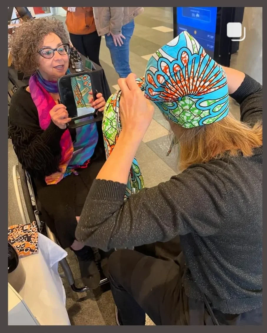 Visitors to my market stall are warmly welcomed to participate in a FREE personal headwrap styling session to have a better feel and understanding of what it’s like to wear/style a headwrap while also browsing/choosing items from my exquisite headwrap and accessories collections.
